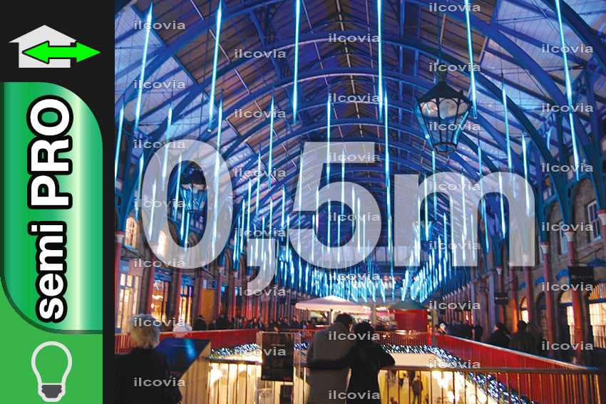 L'article goutte de lumière led vert 0.5x5m semi pro avec référence IBL05GL a les mesures de 5x0,5m (horizontal x vertical.)