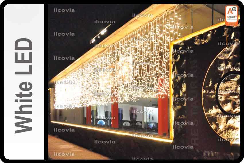 Composé en couleur blanc froid qui est produit par les ampoules type LED placées en série le long de plusieurs ramifications de guirlandes en parallèle à un un embranchement principal