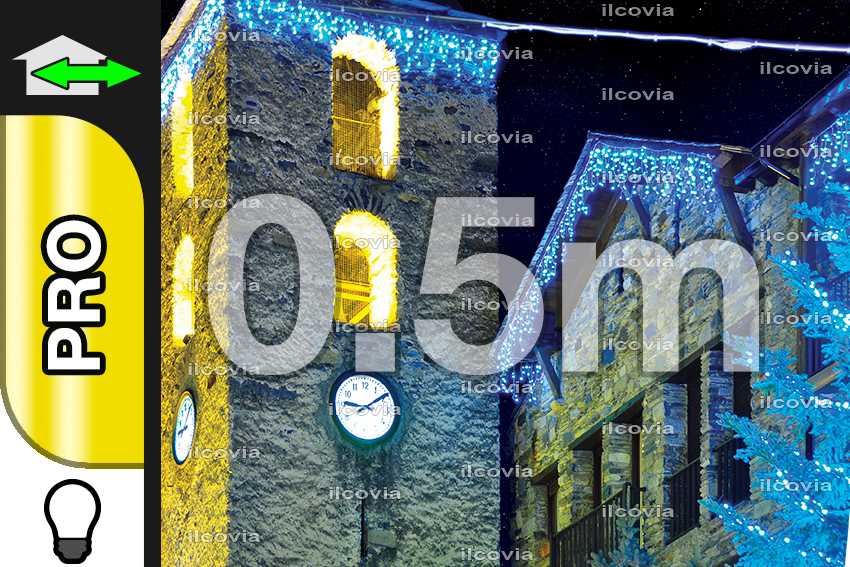 L'article kit rideau stalactite led blanc froid 0.5x10m avec le code de produit IBI05WL2 a une grandeur de 10x0,5m (horizontal x vertical.)